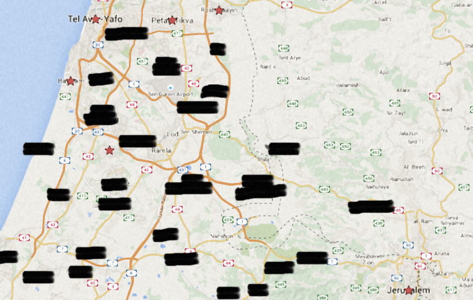 גם לי היה קשה להבין את המסמך, אפילו אחרי קריאה רביעית וחמישית. בגלל אורכן ומורכבותן של הרשימות, נאלצתי למפות אחד אחד את הישובים והרחובות המועדפים. זאת מלאכה סיזיפית, אבל התוצאה הגרפית מתגמלת: ריכוז הנקודות מצביע בבירור על האזורים המועדפים שמתרכזים, בחלוקה גסה, בין נס ציונה לחיפה. השטחים נטולי הסימונים הם אלה שאליהם לא יישלחו העולים: מרחובות דרומה (חוץ מגן יבנה), כל אזור הגליל, העמקים, חדרה והסביבה, הרי ירושלים, אזור בית שמש, רמת הגולן וכל הישובים שמעבר לקו הירוק, להוציא את גבעת זאב.