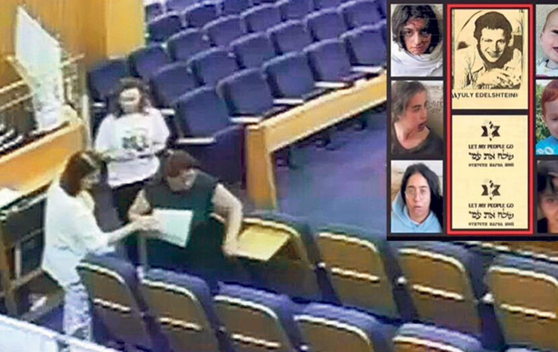בספטמבר 2024 שלוש נשים הניחו על כסאות בית הכנסת בו מתפלל חבר הכנסת יולי אדלשטיין עלונים עם תמונות החטופים לצד הכיתוב: "שלח את עמי". המחווה השקטה נתפסה על ידי קציני המשטרה כהסגת גבול. לבית הכנסת, כך נכתב רשמית של המשטרה מאותו היום, "הוזעקו שוטרי תחנת גלילות ואנשי הזיהוי הפלילי שהחלו באיסוף ראיות וממצאים". עוד נמסר כי "במהלך פעולות החקירה, הבחינו השוטרים בפליירים מפוזרים בתוך בית הכנסת ועליהם תמונות של החטופים".