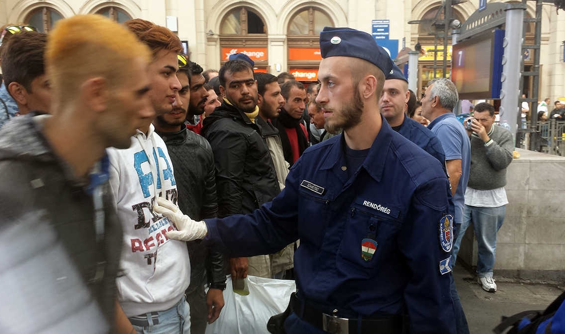 בתחנת הרכבת עצמה, סמוך לרציפים, משתרך תור בלי נתפס של פליטים מאז שעות הבוקר המוקדמות – בהמתנה מייאשת לרכבת לאוסטריה או גרמניה. שוטרים הונגרים מותשים מקיפים אותם, יש חשש – לעתים מוגזם – מאובדן שליטה. רבים מהשוטרים עוטים מסכות נגד זיהום ולידיהם כפפות גומי. למה בעצם?
