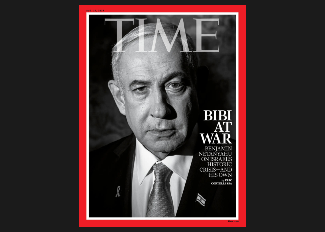 בנימין נתניהו יושב על אחד השולחנות במשרד ראש הממשלה. הוא לבוש חליפה מחויטת למשעי, שיערו מסודר, גבתו מורמת בנינוחות, וידיו נחות על ירכיו באגביות. את חליפתו מעטרות שתי סיכות: האחת של דגל ישראל, והשנייה היא סיכת החטופים. אותה תמונה בתקריב, שלרוב קופצת בצירוף המילים הרנדומליות ״מנהיג רב השפעה״, עיטרה אתמול (ה׳) את שער מגזין ״טיים״. הפעם, המנהיג-הרב-השפעה, הוא ״משלנו״. פורטרט דרמטי, שיער מסודר, גבה מורמת, שתי סיכות – שתיהן לא בפוקוס. ״ביבי במלחמה״, מכריזה הכותרת. ״בנימין נתניהו על המשבר ההיסטורי של ישראל – ועל האישי שלו״.