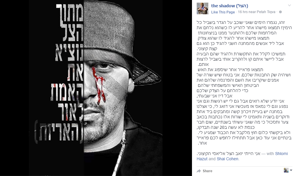 אולי הוא יעבור רחוק מכאן, למקום מבודד, בשביל השקט הנפשי והיצירה, יקום כל בוקר עם קפה כשהוא בוהה בנוף המדברי והשקט שעושה לו כל כך טוב, יחשוב על חייו האחרים ויבין שהוא במקום טוב יותר, שהוא לא צריך את השיט הזה ואז כנראה יכנס הביתה לכתוב קומנטים מרושעים, גזעניים ויסית נגד 20 אחוז מהאוכלוסייה. כפרה על הצל, לא יכולה לחכות כבר שיפרוש.