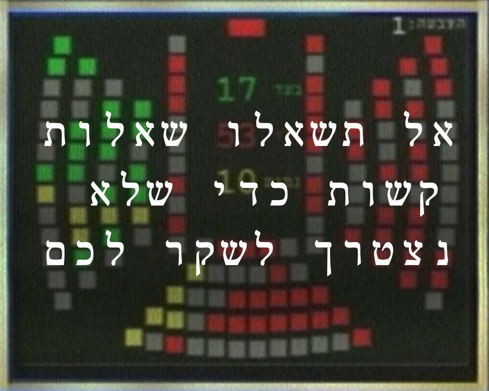 מדייק הפתגם: מרבה דעת, מרבה מכאוב. תמצית של הקיום האנושי המורכב. אבל בתמצית הזו אין הוראה שלא לדעת, אלא רק אזהרה ותיאום ציפיות: זה הולך לכאוב. למרות הפתגם מהמקרא, העומדים בראשנו מאז קום המדינה ועד היום דוגלים ב״אל תשאלו שאלות קשות כדי שלא נצטרך לשקר לכם״. הם כבר החליטו בשבילנו – לדעת זה לא טוב.