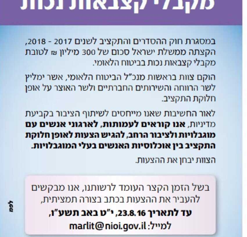 ״טוב, תרשום: במסגרת ידא ידא ידא, הקצתה הממשלה 300 מיליון ידא ידא ידא לטובת מקבלי קצבאות נכות בביטוח לאומי״