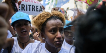 אלפי אריתראים מוחים עכשיו ברמת גן נגד הדיקטטורה בארצם