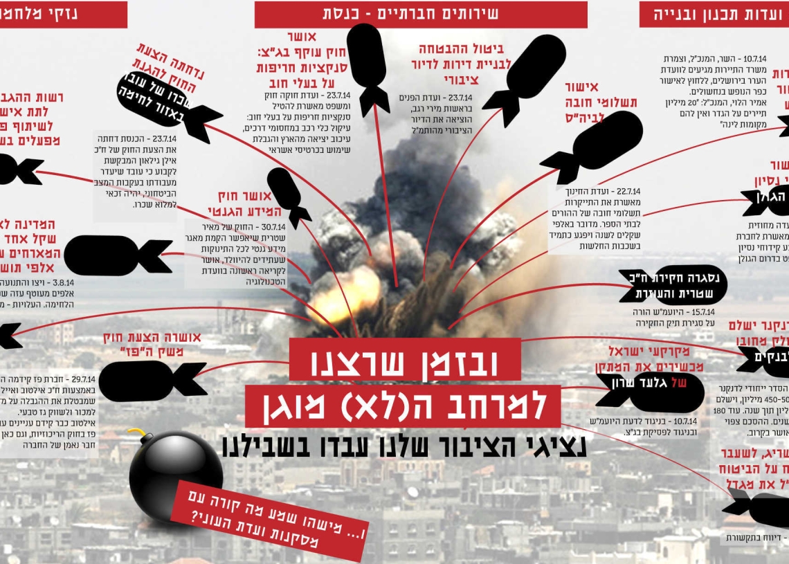 בממלכת ההון-שלטון מלחמות הן לא מעצור בגלגלי מנגנון העושק האזרחי. יש שיאמרו שהן אפילו תמריץ. בזמן שאולפני החדשות והעיתונים מלאים בפרשנויות ביטחוניות ועדכונים רציפים מזירת הקרב, נוצרת קרקע נוחה לפעולה עבור אלה שמבקשים לגזול, ומתפנה מרחב מוגן מביקורת ציבורית, עבור אלה שדואגים לאינטרסים האישיים שלהם על חשבון הציבור. אז מה קרה עד כה בזמן שנלחמנו בחזית, בעורף ובאולפנים?