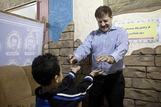 ד"ר מסאלחה בודק מטופל במהלך ביקור בעזה בשנה שעברה