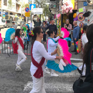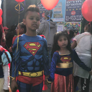 הראשונה בסדר התנועה היא תזמורת המשטרה. אחריה ג'יפ ממלחמת העולם השנייה ששייך למועדון החמש, אחר כך אבות שנושאים את דגלי האומות השונות מהן הגיעו ואחריהן אמהות מהפיליפינים וממדינות אחרות בלבוש מסורתי. ואז הילדים – מאות ילדים, מכיתה א' והלאה, מישראל, מדרום מזרח אסיה, מאפריקה, מכל העולם – וכולם מחופשים מכף רגל ועד ראש, כמו תלמידי כל בתי הספר בארץ.