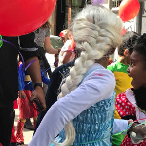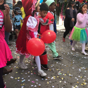 כשהעדלאידע מגיעה לרחוב וולפסון, שמלא בחנויות תחפושות, בעלי החנויות מחכים לילדים בחוץ עם משגרי קונפטי בכל הצבעים ומכל הסוגים. כל המוכרים וצוות החנות עומדים על המדרכות, ומכוונים את המשגרים כך שיפזרו את הנייר בדיוק מעל הילדים. כל פיצוץ גורר אחריו "וואו!" מצדם של ילדי כתה א' שמובילים את המצעד. הם מנסים לתפוס את הניירות המעופפים, והמורה נוזפת בהם שלא להרים את הקונפטי מהרצפה. "מה, ככה אתם מחלקים את זה בחינם? זה לא עולה כסף?" שואל עובר אורח את אחד מעובדי החנויות בתדהמה מסוימת. "תראה איך זה משמח את הילדים", עונה לו המוכר, תופס עוד משגר ויורה לשמיים המון ניירות אדומים. "על זה שעשינו אותם מאושרים כל כך, תהיה לנו המון פרנסה בעזרת השם. הם ילדים טובים, ועשינו להם חג שמח".