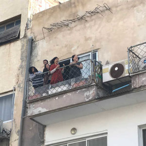 על הג'יפ הקטן שעליו כתוב "ביאליק רוגוזין, קמפוס חובק עולם" יושבים שני אנשים והם מחייכים מאוזן לאוזן, כמו כל מי שעוברים ברחוב, וכמו הדיירים – ישראלים ותיקים לפי המראה – שיוצאים למרפסות להסתכל על המצעד.