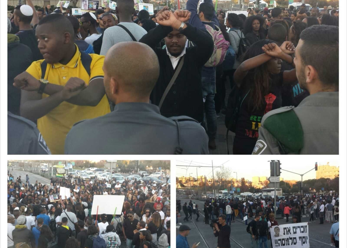 19:27: המפגינים יושבים ושוכבים על הרצפה כאות מחאה. "הגענו לפה כדי להציל את המדינה. אולי הקהילה האתיופית תלמד אתכם סופסוף מה זה להיות בני אדם. שנים התביישנו במי שאנחנו, בנתיים סלמסה מת, והרשימה עוד ארוכה."