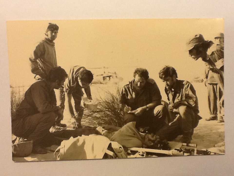 אף שאנשי נגמ"ש הרפואה רחוצים ונקיים עכשיו, הפצועים לא מפסיקים לזרום אליהם באותו סוף שבוע בחניון במבדיל. חובשים שברים, מטפלים בכוויות. אז טאובר רוכן אל אחד מהפצועים, כשלשמאלו החובש שלו עקיבא גרוס, ודווקא כשהוא רושם משהו אצבעו של נהג הג'יפ המינהלתי של המח"ט נשלחת אל כפתור המצלמה. קליק-קלאק יש לו תמונה (מוצגת בראש הכתבה), וחודשים אחר כך כשהיא חוזרת מפיתוח והוא מגיש אותה לטאובר, אומר לו הדוקטור: "שימעל'ה, מילא שצילמת אותי כותב ולא מטפל בפצוע, אבל רואים לי את הקרחת". אז שימעל'ה לוקח אליו את התמונה ומחזיר אותה מאוחר יותר עם ריטוש: "מילא לי את הקרחת, שאז עוד היתה קטנה".