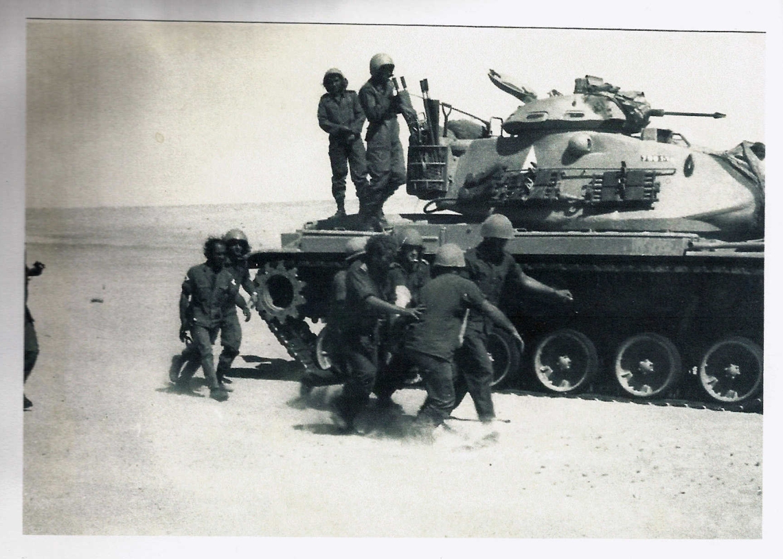 גדעון שֹהם מובהל אל תוך נגמ"ש הרפואה צ750421. למעלה: שֹהם מורד מהטנק שחילץ אותו