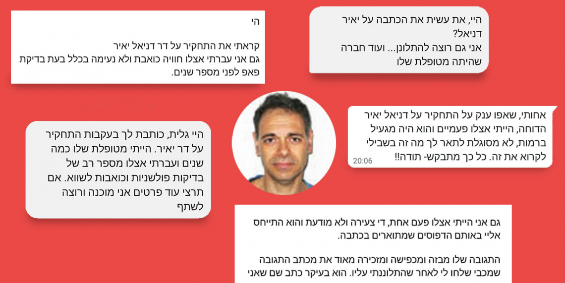 עשרות הודעות הגיעו למערכת המקום מאז יום ראשון, אז פרסמנו את הכתבה על הגניקולוג ד"ר דניאל יאיר, שכללה עדויות על התנהלות לא הולמת של הרופא, לרבות בדיקות מכאיבות ללא אזהרה, יחס מזלזל, דיבור בוטה והתעלמות מכאב המטופלות. ההודעות הרבות שהגיעו אלינו בעקבות הכתבה נשאו מסר דומה – גם לי זה קרה.