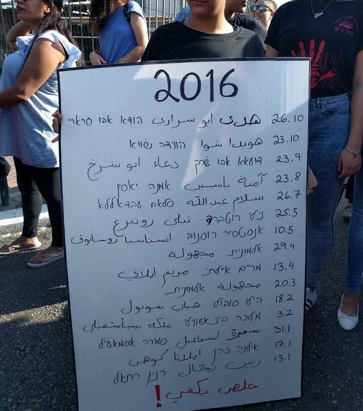 נערה מחזיקה שלט המונה את שמות הנרצחות בידי גברים מתחילת השנה ועד 28.10. צילום: איילת מור