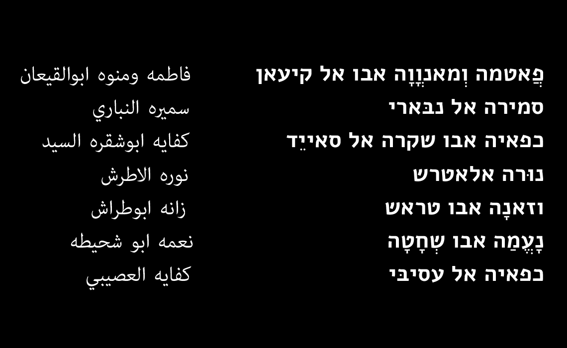 להרוגות בתאונה יש שם, פנים, חיים שלמים, ילדים, ומשפחות שנשענו עליהן. הן נסעו להתפלל במסגד אל-אקצא בירושלים והיו בדרכן חזרה עם מתנות שקנו לילדיהן שהמתינו לשובן. הן כבר לא יחזרו לעולם ושמונה משפחות נהרסו ביישוב אחד. ולאֵבֶל שותפים כל הבדואים בנגב. חבל שהסיקור התקשורתי מתעלם מפרטים אלו ומעדיף להתייחס אליהן כאל מספרים בלבד.