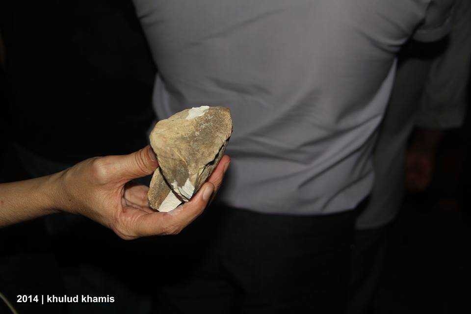 אחת מהאבנים שנזרקו אל עבר המפגינים. צילום: חולוד חאמיס