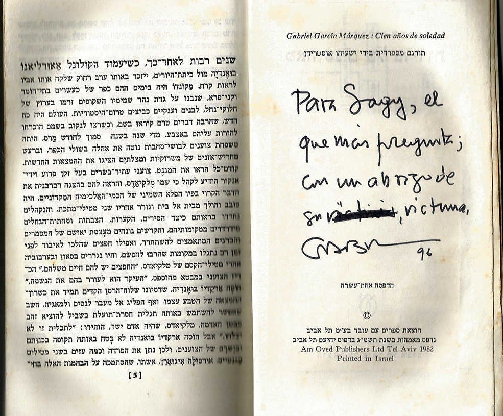 הקדשה מגאבו בתוך "מאה שנים של בדידות"