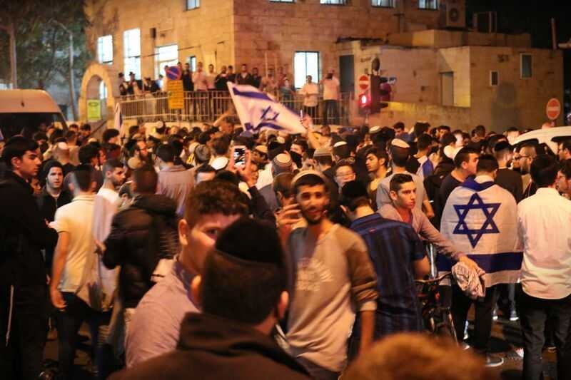 The demonstrators curse the Channel 10 News team that was broadcasting live. One of them spits on the camera as others chant, "Fuck the press." One of the demonstrators tells his friend that they were able to catch an Arab at Nachlaot: "You won't believe what we did to him," he continues as they walk towards the Old City.