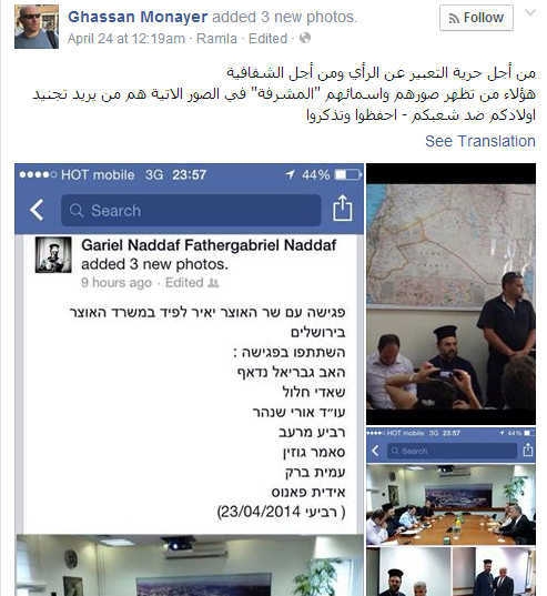 ביום חמישי שעבר ראה מונייר בשיטוט בפייסבוק תמונה שהקפיצה אותו: גבריאל נדאף, כומר ערבי, העלה צילום ופוסט מפגישה שלו עם יאיר לפיד במשרד האוצר. נדאף ציין את פועלו שלו למען גיוס ערבים נוצרים לצה"ל, ובפוסט פרסם רשימה של משתתפים, כולם תומכי גיוס. מונייר שיתף את הפוסט של נדאף, והוסיף כמה מלים משלו: