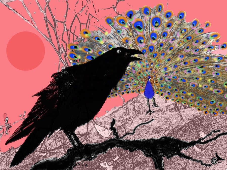 ואז הבנתי. לקחתי חצי פקאן ביד, והגשתי לו ברגשות מעורבים. הוא לא התאמץ כלל ללקט אותו ולשבור את קליפתו ולנקותו משבבים והנה הוא מקבל מן המוכן, רק כי הוא יודע שאני רוצה שהוא יחבב אותי ומתוך ביטחון השמור ליפים. עמדנו כך כמה דקות, אני מאכילה אותו, מקור נוגע ביד ומחכה שיבלע ומגישה לו שוב ושוב. צלילים קטנים של משהו נחבט על קרש שהיה ליד רגלי הימנית הקיצו אותי מארוחת הארבע של הוד נסיכותו. אלו היו אגוזים שהתפצחו, אבל לא הגיעו מכיוון העץ. מבט אלכסוני למקום המשוער שממנו נפלו גילה לי עורב שעמד על עץ שסק ובכל הדקות האחרונות ניסה לטווח לראשי כדי לפצח עלי ועכשיו השמיע קריאות נרגזות מכיוון שגיליתי אותו וזזתי. בסתר לבי אני חושבת שאולי הוא קצת קינא שיש מי שלא צריך להתאמץ. הטווס המשיך לתבוע את מנחתו, העורב המשיך לזרוק עלי פקאנים ואני בתווך, בין היפה לחכם, עד שהתחזק הגשם ופטר אותנו ושלח אותנו עוף עוף למחסהו.