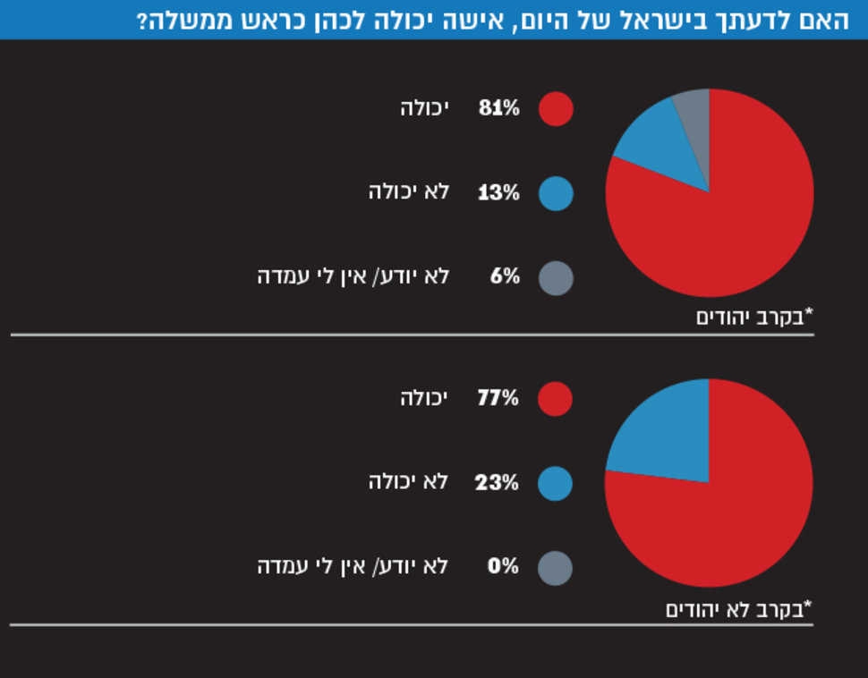 יום האישה היהודייה שמח: סקר מיוחד שפורסם באתר וואלה לרגל יום האישה הבינלאומי שחל היום, בדק מי הפוליטיקאית המתאימה ביותר לכהן כראשת הממשלה לדעת הציבור בישראל. מנתוני הסקר עולה כי ח"כ ציפי לבני הגיעה למקום הראשון, בפער משמעותי מהבאה אחריה: 18% ללבני, לעומת 14% לשרה איילת שקד. הכותרת של הידיעה מכריזה דווקא כי שקד נבחרה למתאימה ביותר לתפקיד.