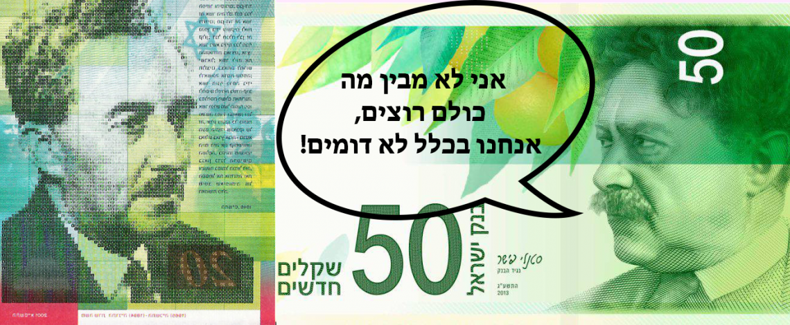 בלי קשר לדמיון בין השטרות, שווה להתעכב על 40 השניות של סרטון הפרסומת כי הוא משקף באופן מאלף, בכל מובן, הבט וסאבטקסט אפשרי, את הפער שבין איך השלטון רואה את האזרחים לבין המציאות שהאזרחים חיים בה.