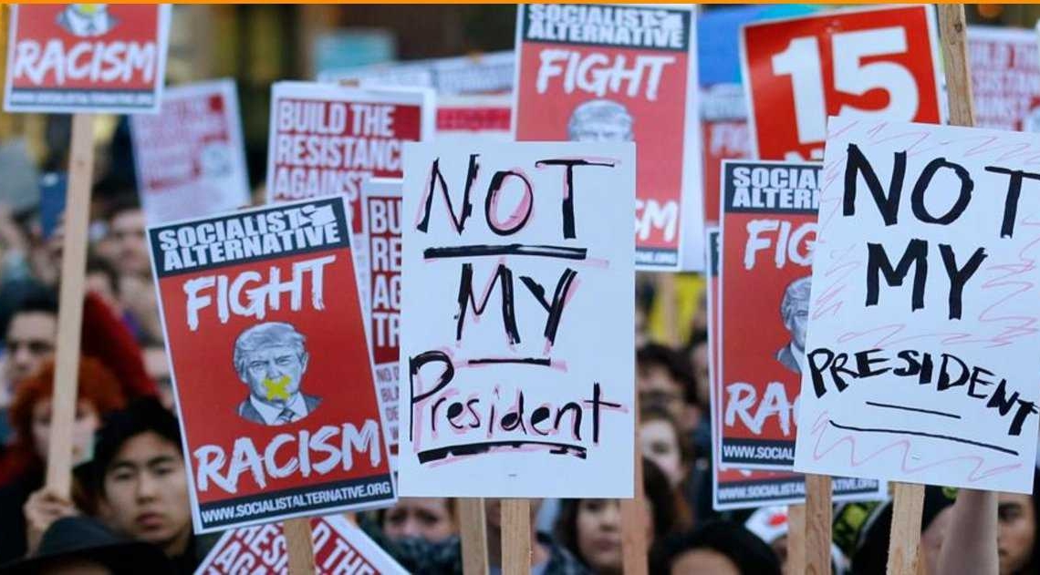 בעוד שבנאום ההפסד שלה בירכה קלינטון את טראמפ על נצחונו, רבים מאזרחי ארצות הברית מתקשים להשלים עם העובדה שמי שבקרוב יהיה מנהיגם הוא אדם שהתרברב בתקיפה מינית של נשים, וידוע בשנאתו למיעוטים.