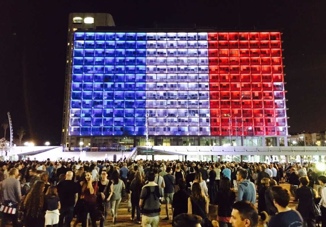 ברגעים אלה, מלבד הפגנות מתווה הגז ונגד הרפורמה בבריאות הנפש מתקיימת בתל אביב גם עצרת הזדהות עם העם הצרפתי בעקבות הפיגוע בפריז אמש שבו נהרגו כ-128 בני אדם. בארוע ינאמו שגריר צרפת בישראל פטריק מזונאב והנשיא לשעבר שמעון פרס. בניין עיריית תל-אביב-יפו הואר בצבעי דגל צרפת לזכרם של הקורבנות.