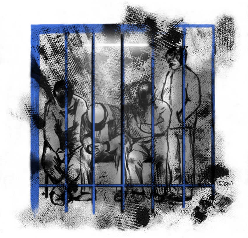 אחת הנשים שהיתה עם מ' בתא היתה נרקומנית בולמית. "היא בחורה מקסימה ומתוקה ומסכנה ואינטנסיבית", מספרת מ'. "הרגשתי ממנה כזה חוסר שקט פנימי שלא נתקלתי בו בחיים. היא צרחה לסוהרים כל הזמן, הקיאה איזה חמש פעמים במהלך היום והשתינה בתוך התא, כי לא באו להוציא אותה. היחס היה כל כך קשה, הם לא מסתכלים עליך. הם כאילו לא שומעים. מזלזלים. וכל זה קורה מתחת לבית המשפט".