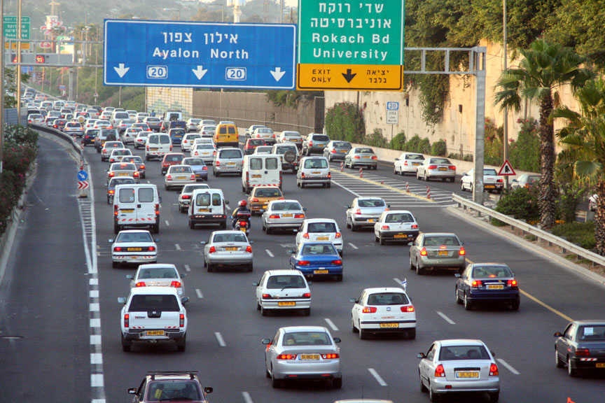 פקק בנתיבי איילון. צילום: Beivushtang from en.wikipedia.org, CC BY-SA 3.0